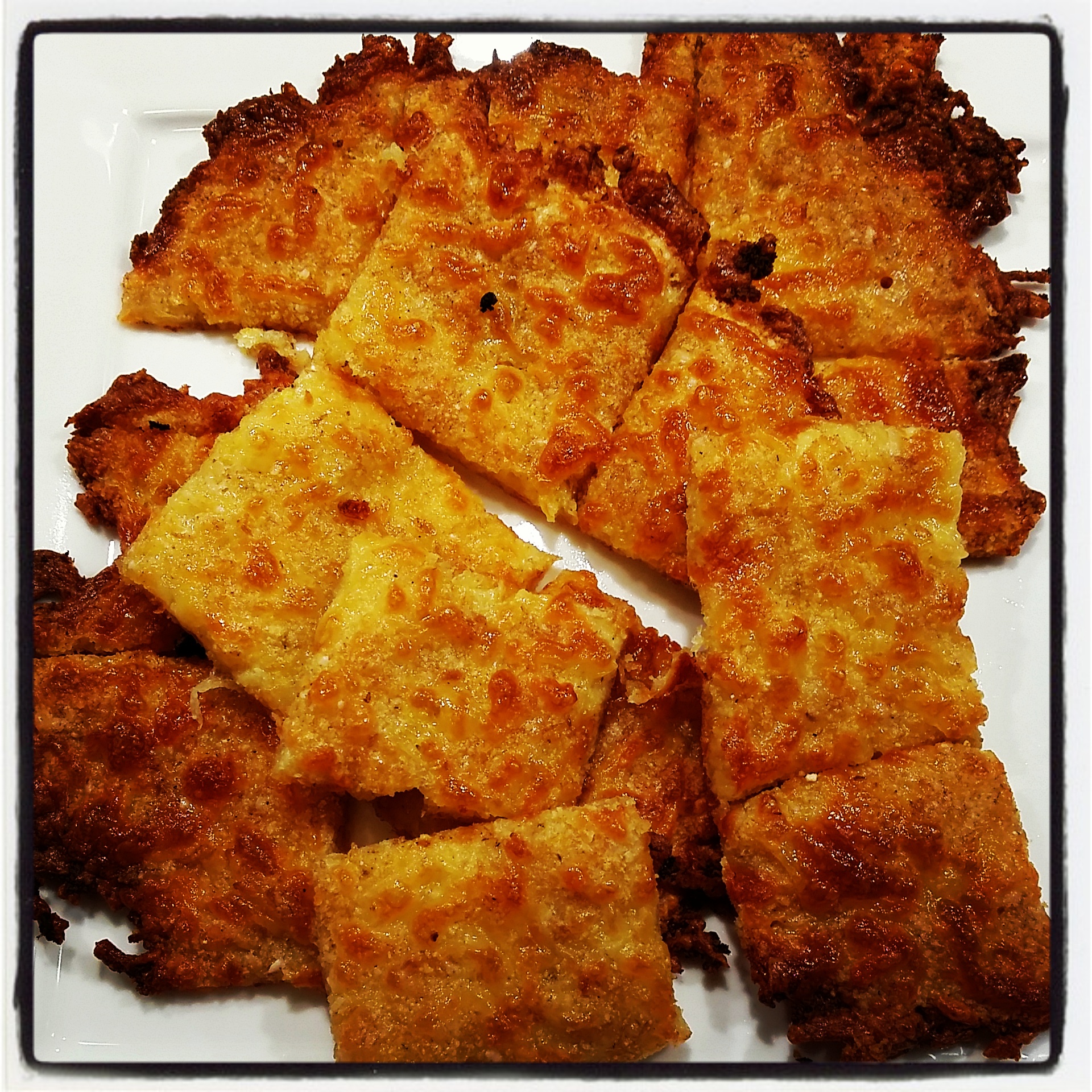 Blandaði öllu vel saman, dreifði þessu á bökunarpappírsklædda plötu og bakaði við 200°C í 15 mín ca. Penslaði svo með hvítlauksolíu þegar það kom úr ofninum :)